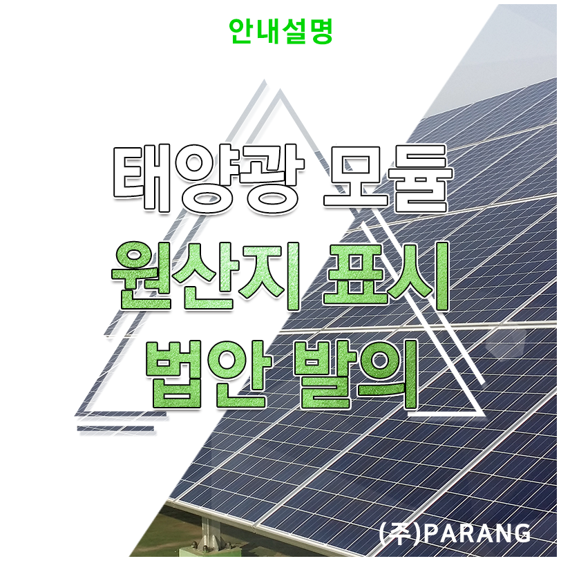 태양광 모듈 원산지 표시 관련 법안 안녕하세요 여러분~ 태양광 분양 및 시공 전문 기업 파랑티에스에너지...