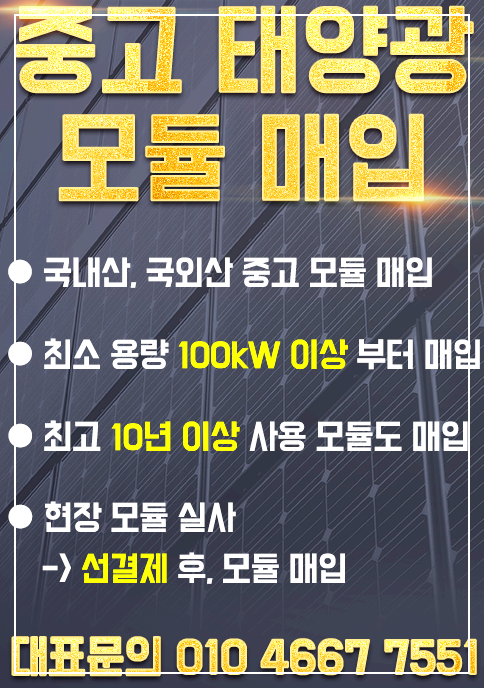 | 태양광 중고 페 모듈 패널 구입 매입 (1) | 2022.09.04 |