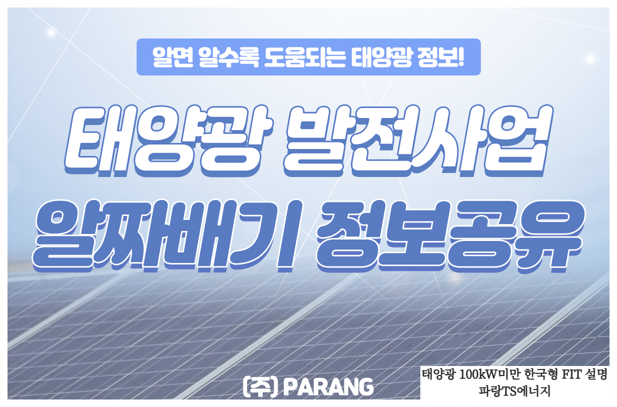 안녕하세요, 태양광 전문기업 (주) 파랑티에스에너지 입니다. 오늘 알려드릴 내용은 태양광 100kW미만 한국형 FIT 설명 입니다. 지난해 12월 30일 2023년도 상반기에 소형 태양광 고정가격 매입공고가 된 사실은 다들 아실 것입니다. 이번 포스팅은 마지막 한국형 FIT가 될 수 있는 공고에 대해 자세히 설명해드리겠습니다.