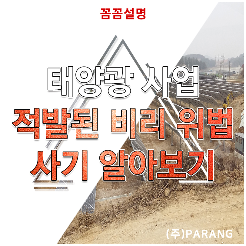 안녕하세요 태양광 전문기업 (주) 파랑티에스에너지 입니다. 오늘의 정보는 태양광 사업 적발된 비리 위법 사기 정확히 알고 갑시다 입니다. 요즘 태양광 발전사업에 대한 수사가 이어지면서 비리들이 적발되고 있는데요, 잘못된 정보 말고 정확한 정보를 알려드리겠습니다.