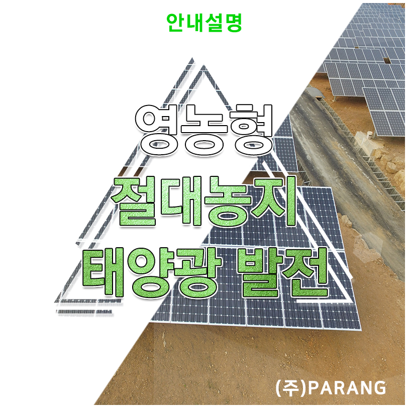 안녕하세요 태양광 전문기업 (주) 파랑티에스에너지입니다. 오늘의 정보는 절대농지 영농형 태양광 발전입니다. 국내에서 탈농 현상이 고착화되면서 농촌 인구의 공동화, 고령화 진행 속도가 매우 빠른데요, 영농형 태양광 발전사업에 대한 문의 또한 나날이 늘어가고 있습니다. 자세히 설명해드리겠습니다.