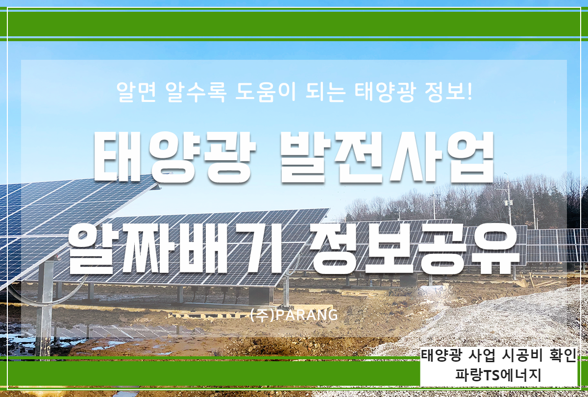 안녕하세요 태양광 전문기업 (주) 파랑티에스에너지입니다. 오늘의 정보는 태양광 사업 시공비 확인입니다. 태양광 사업은 개인이 진행하기에는 다소 벅찬 사업입니다. 때문에 시공 업체와 함께 진행하시는 것이 가장 좋은 방법인데요, 태양광 사업이 어려운 상황에서도 발전시설에 대한 시공 비용 문의가 빗발치고 있습니다.