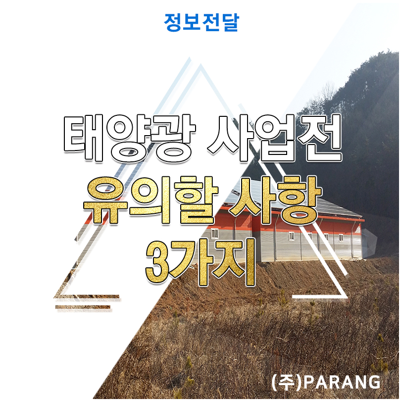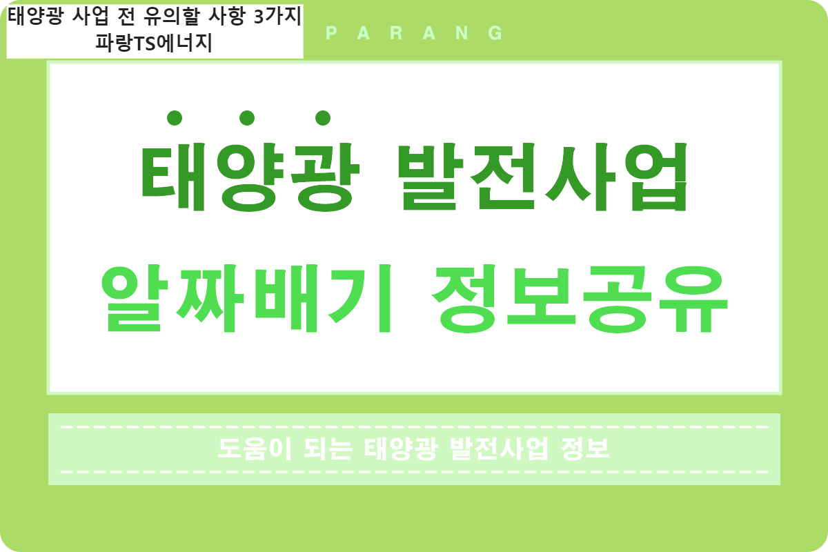 안녕하세요 태양광 전문기업 (주) 파랑티에스에너지입니다. 오늘의 정보는 태양광 사업전 유의할 사항 3가지 입니다. 태양광 발전사업 피해 사례를 자세히 설명드리겠습니다.