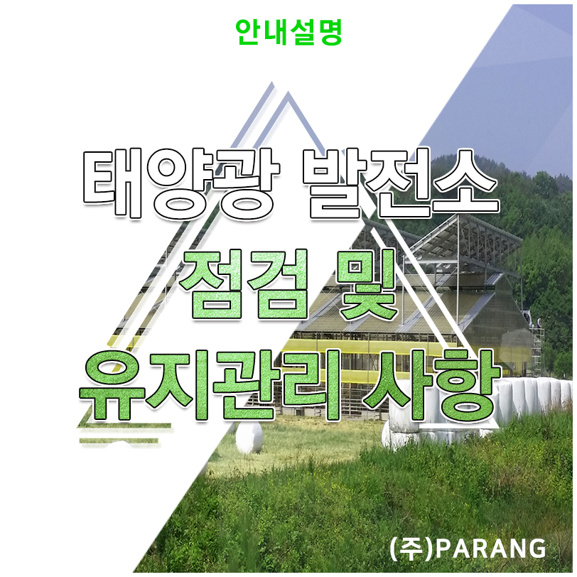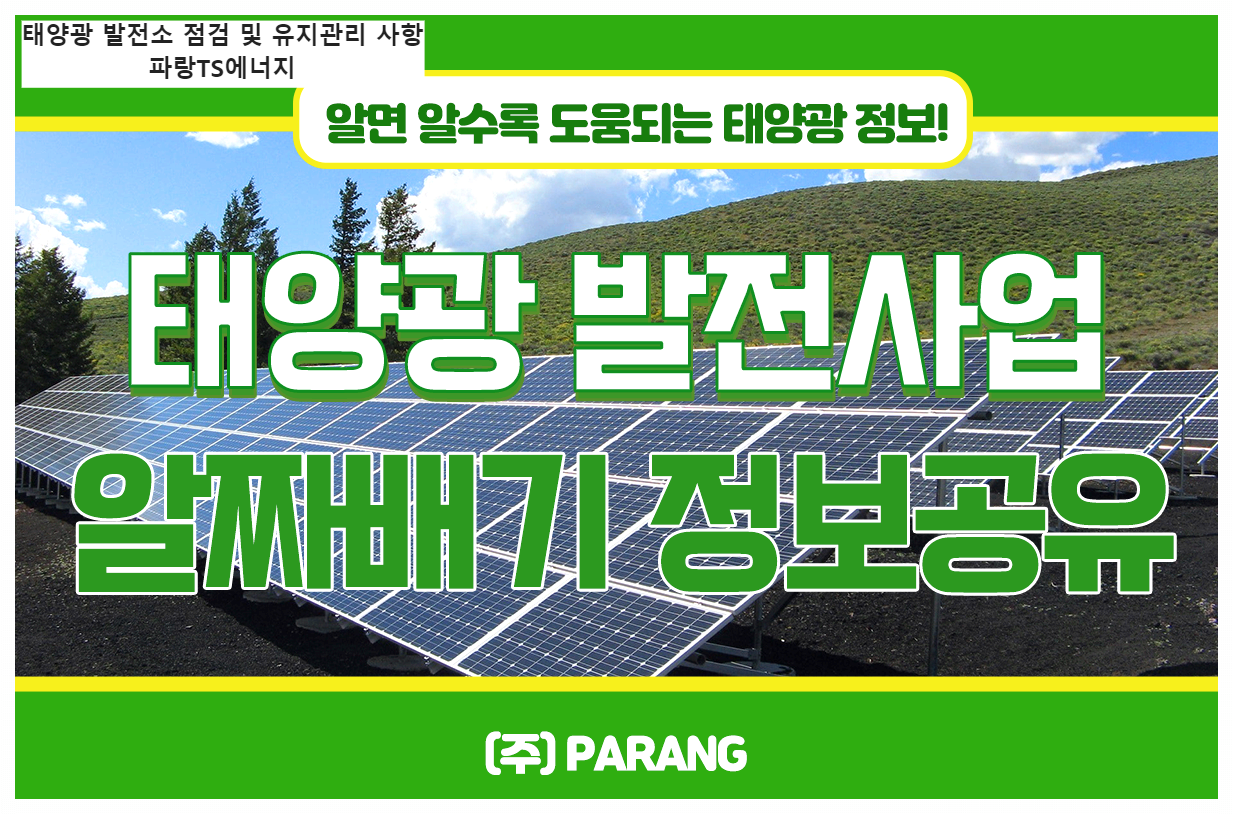 안녕하세요 태양광 전문기업 (주) 파랑티에스에너지입니다. 오늘의 정보는 태양광 발전소 점검 및 유지관리 사항 입니다. 태양광은 설치 후 관리가 가장 중요합니다. 7가지 태양광 점검 및 유지관리 사항에 대해 설명드리겠습니다.