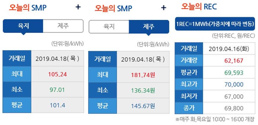 현물 REC,SMP 단가 확인 사이트