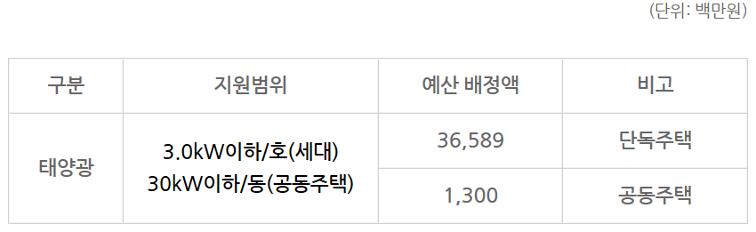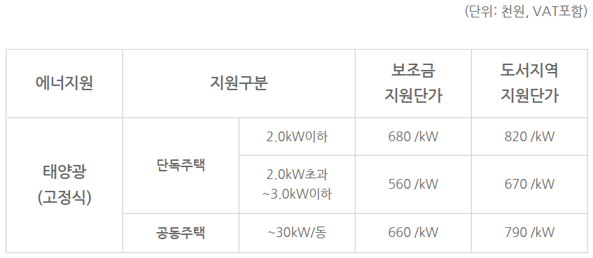 ⑦ 공동주택에 공용전기가 아닌 개별 가구용으로 태양광설비를 설치할 경우 단독주택 단가가 적용됩니다.