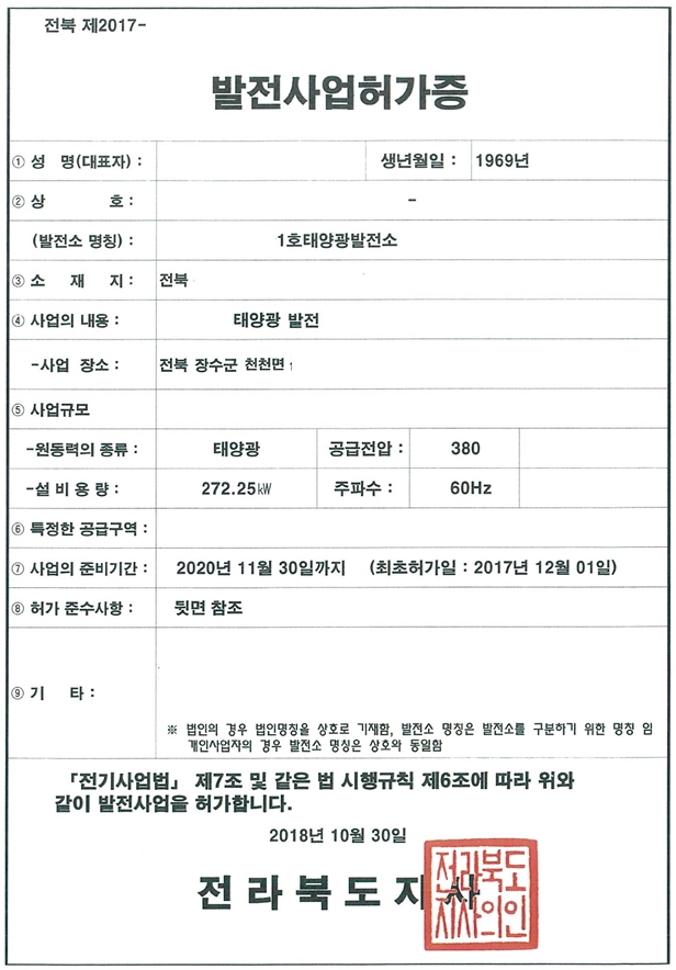 발전사업허가증 사본