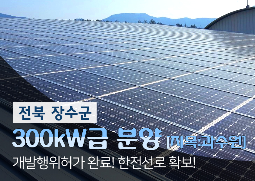 태양광 분양 매매 ) 전북 장수군 300kW 공사 착공 개발행위허가 완료 한전선로용량 확보 [파랑티에스에너지]