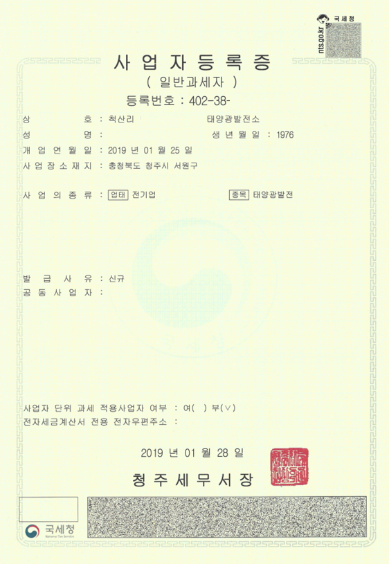 발전사업허가증 사본