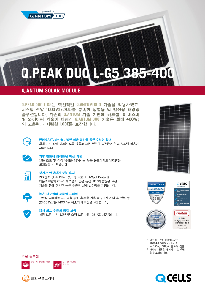 2) 모듈 : 한화 DUO 385W 국내산 단결정