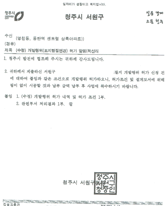 개발행위허가서 사본