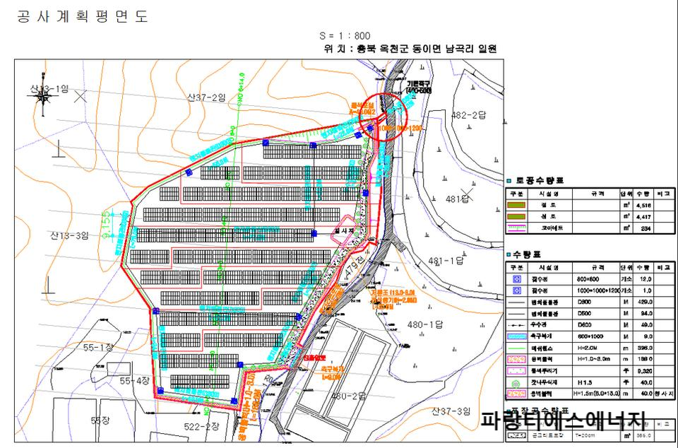 [ 옥천군 발전소 현장배치도와 드론 사진 ]