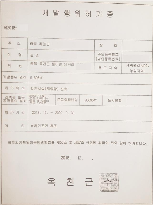 개발행위허가 완료됨