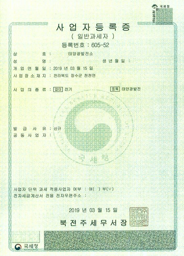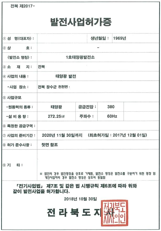 발전사업허가증 사본