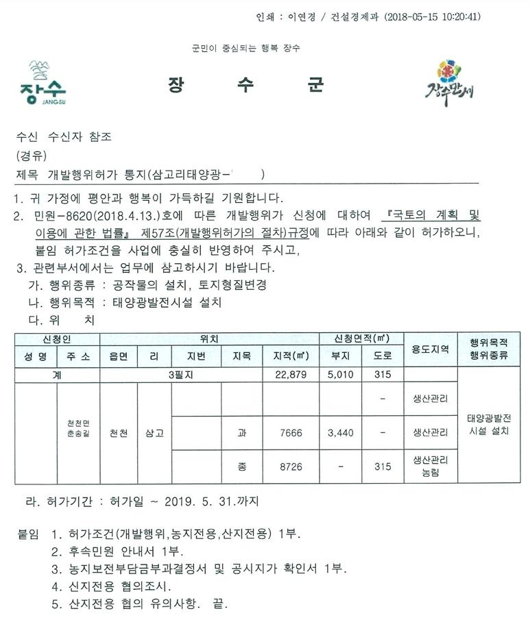 개발행위허가증 사본