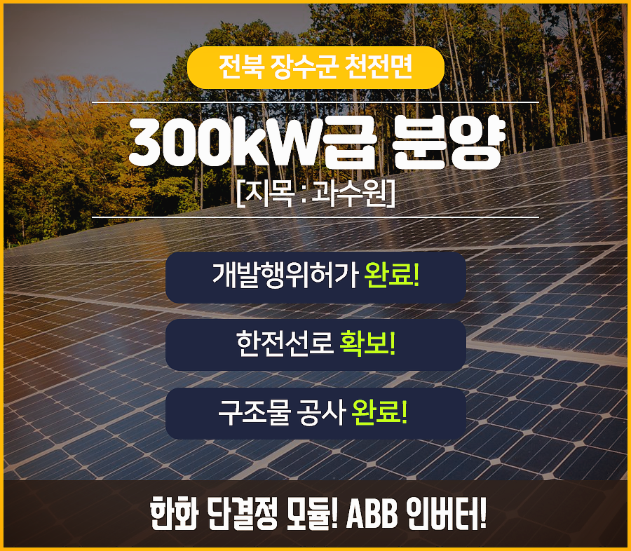 300kW급 태양광 분양 -- 전북 장수군