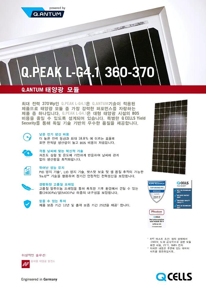한화 큐피크 365W 단결정 모듈 816장 사용됨
