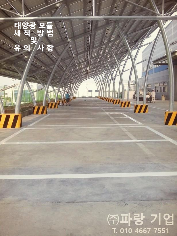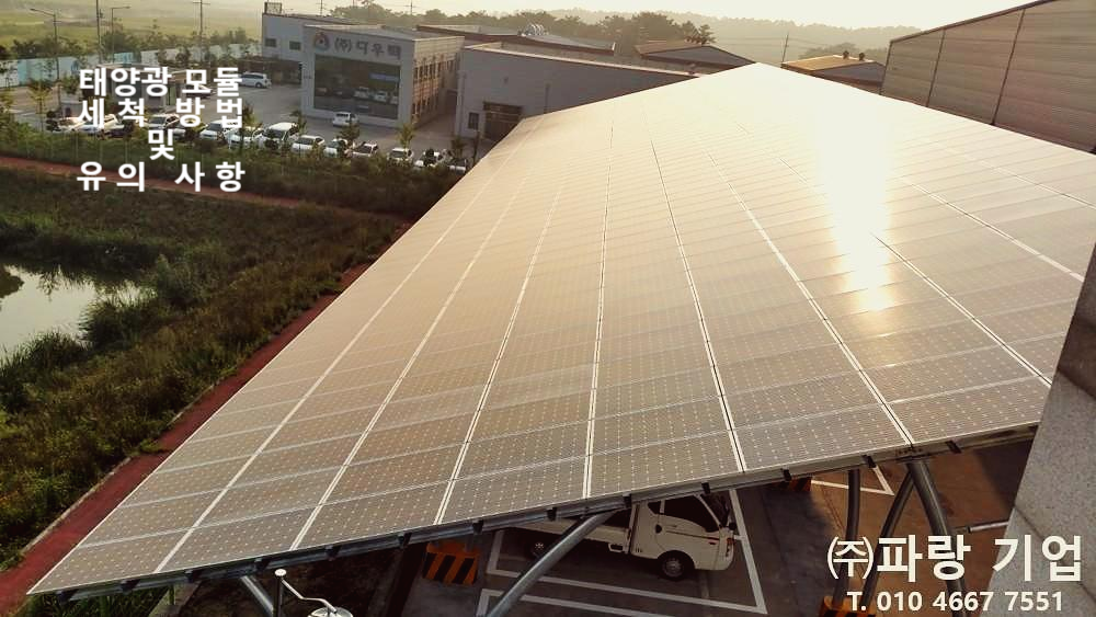 참고로 화학성분이 포함된 세정제로 세척하게 되면 모듈에 오히려 손상이 갈 수 있고 부지의 토양 오염도 유발할 수 있기 때문에 신중한 판단을 하시는 것이 좋습니다.