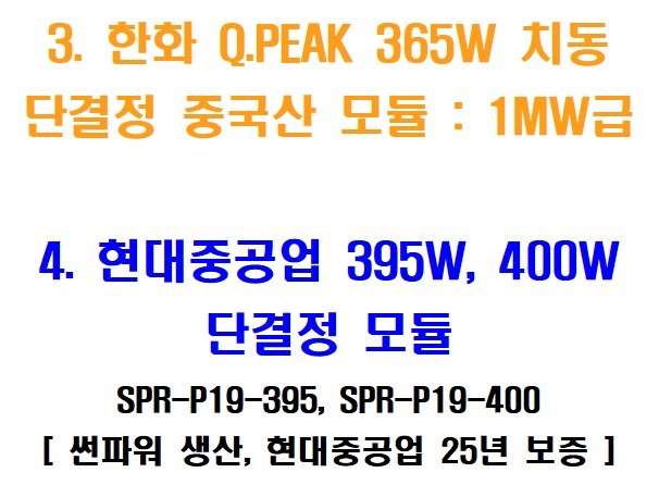 3) 한화 Q.PEAK 365W 치동 중국산 모듈 : 1MW급