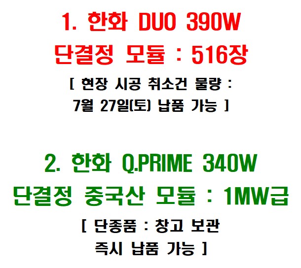 [ 현장 시공 취소건 물량 : 7월 27일(토) 납품 가능 ]