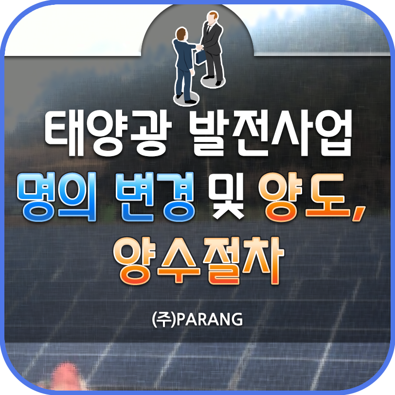 오늘은 태양광 발전사업 명의 변경 및 양도, 양수 절차에 대해 알아보도록 하겠습니다.