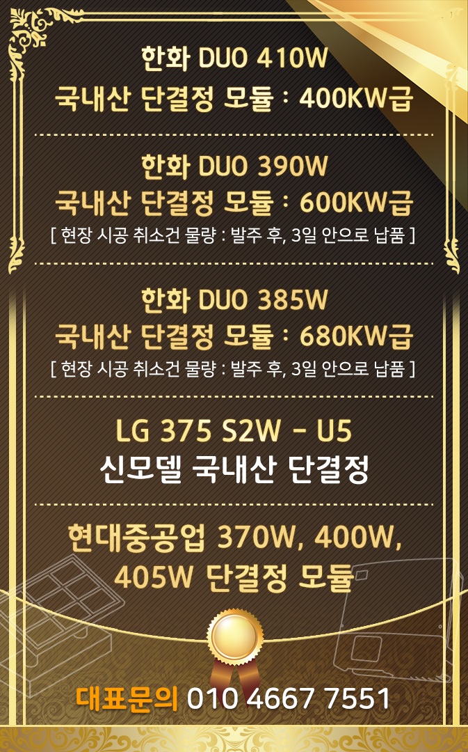 (2) 모듈 : 한화 듀오 385W 1,275EA [제조국 : 대한민국]