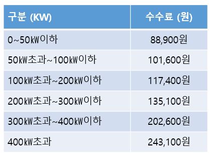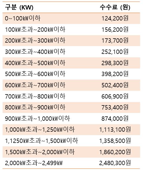 ③ <2021 태양광 전기안전관리대행 수수료표 - 고압 설비용량 기준>