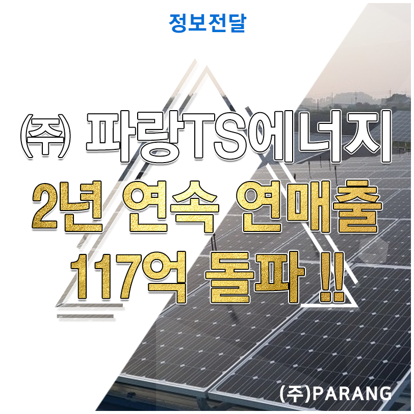 파랑티에스에너지는 2년 근속 연매출 117억을 달성했습니다. 그 자세한 소식 전달해드리겠습니다.